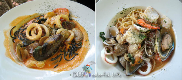 ↑毒癮海鮮麵(辣) ↑西臘茴香海鮮義大利麵