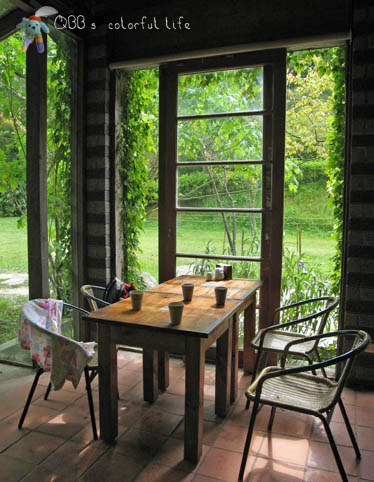 大夥兒就在天然美景包圍的戶外庭園中泡茶、聊天、打牌